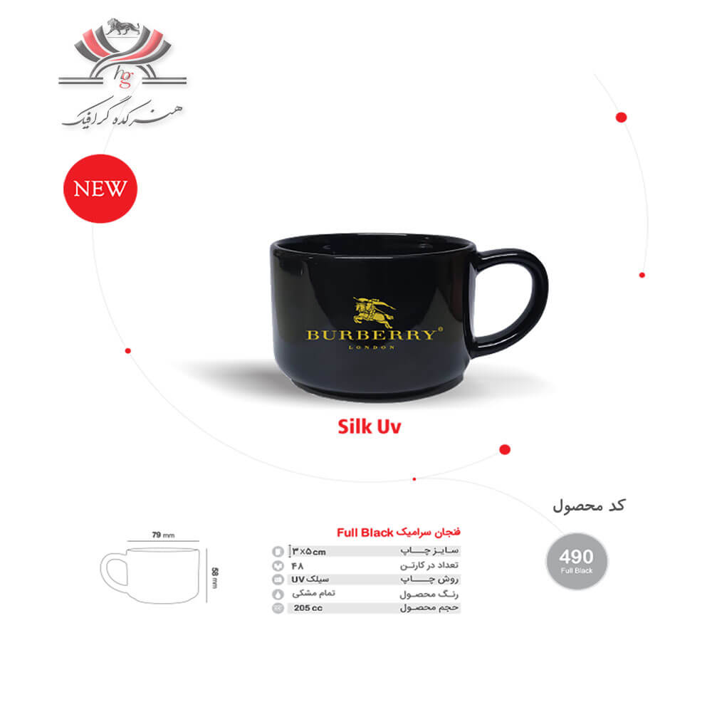 انواع فنجان سرامیکی Full Black با چاپ Silk UV