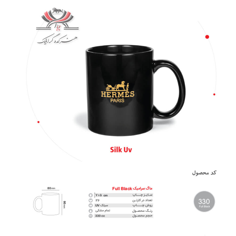 انواع ماگ سرامیکی Full Black با چاپ Silk UV